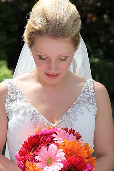For our wedding we mutually decided on a star theme, with one of our favourite songs from a little-known artist being called Stars, so it just seemed to fit. The theme was carried through everything, the invites, accessories, song choices and even the cake and it all worked perfectly. We wanted a bright, fresh, young and elegant sort of look to the wedding and we believe we achieved it. We both love pink so a bright coral pink was chosen and complemented the beautiful gerbera flowers we used all around the venue.