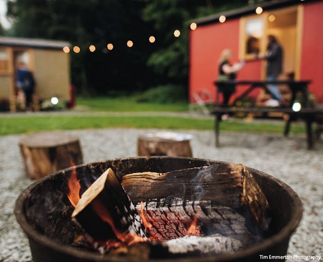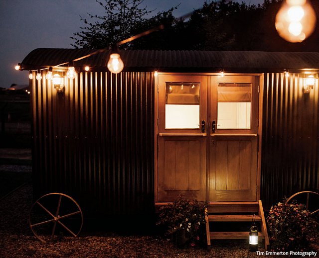 to come to the wedding open evening and stay in one of the shepherd huts. The