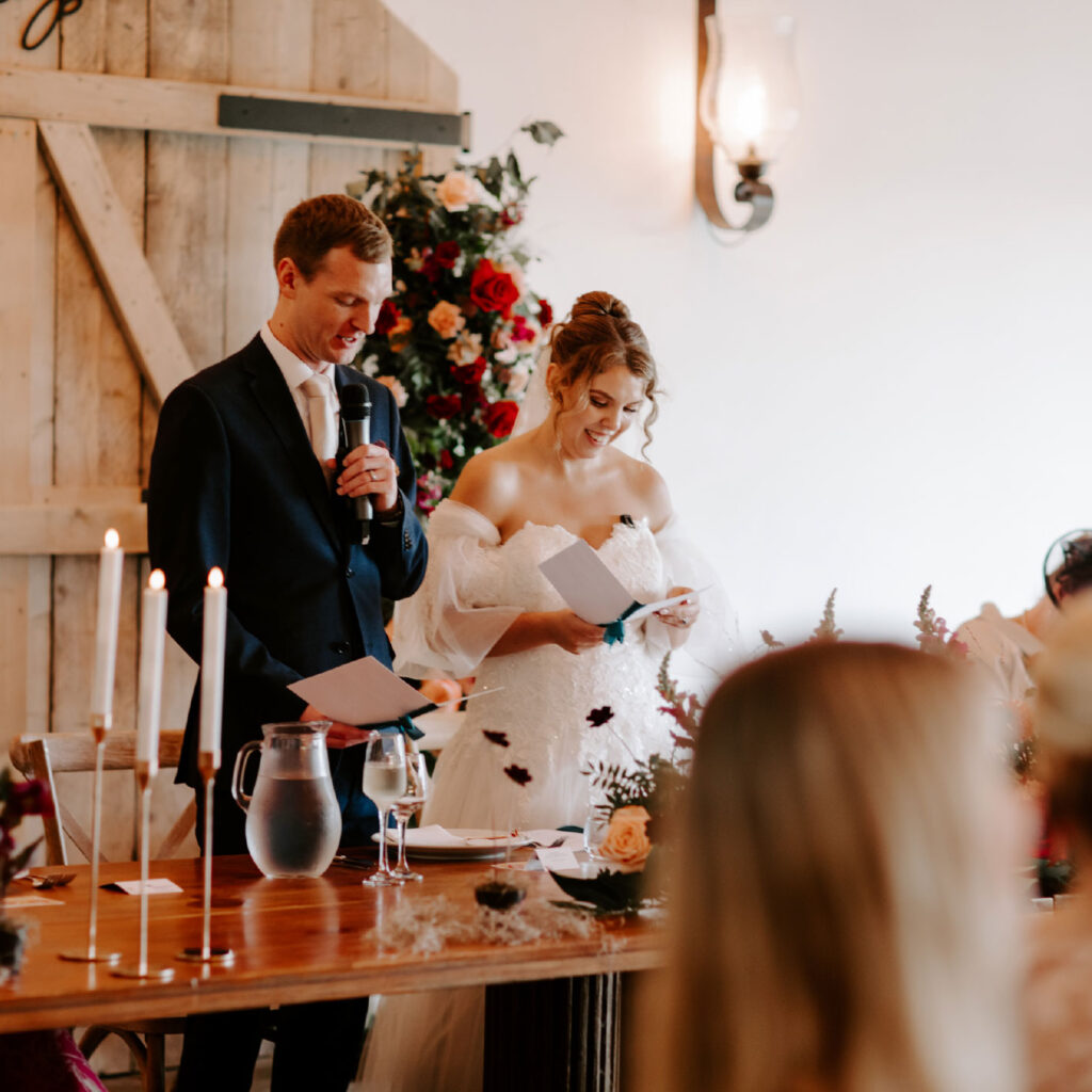Wildfire Floral Co complemented our theme by adding stunning florals to the tables in sake bowls and we moved the flower towers from the ceremony to the barn doors and used the florals from the signing table on the top table.