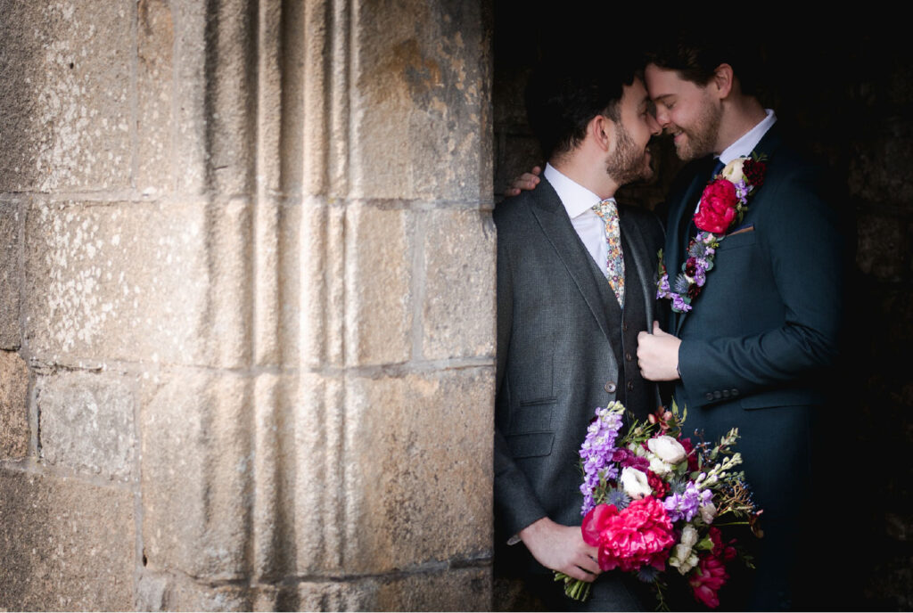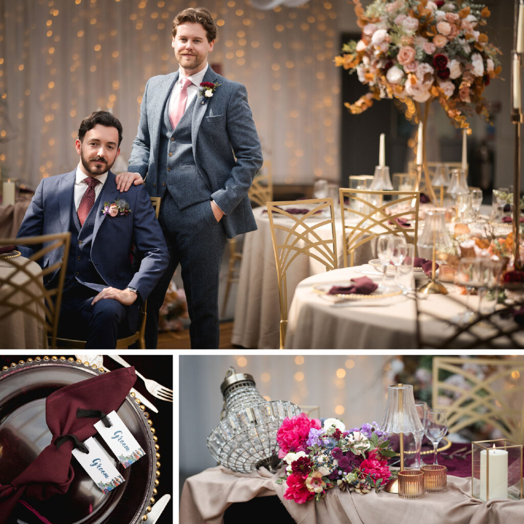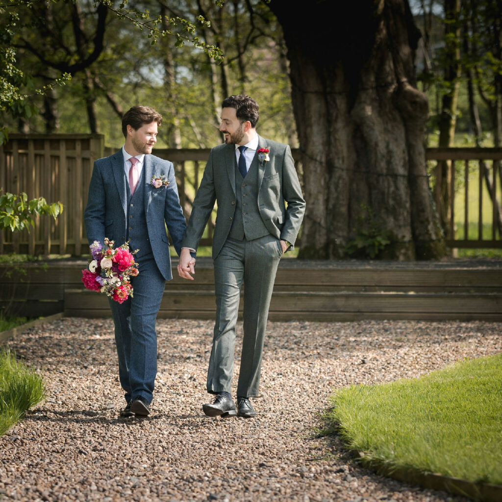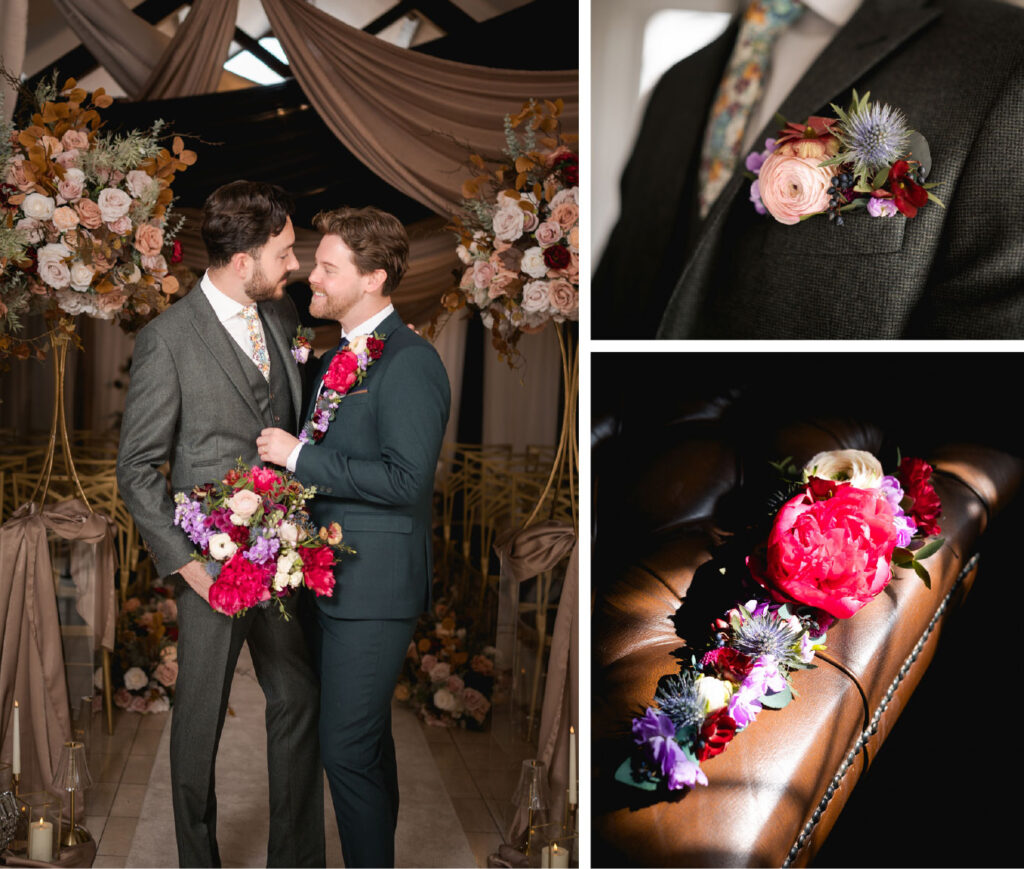Our models Glen & Tom wore suits provided by @hopemenswear_norden, modelling multiple sophisticated looks, with relaxed tweed to luxury tails, and pops of colour through fabulous floral details provided by Abbey of Fleurs & Ink Floristry.