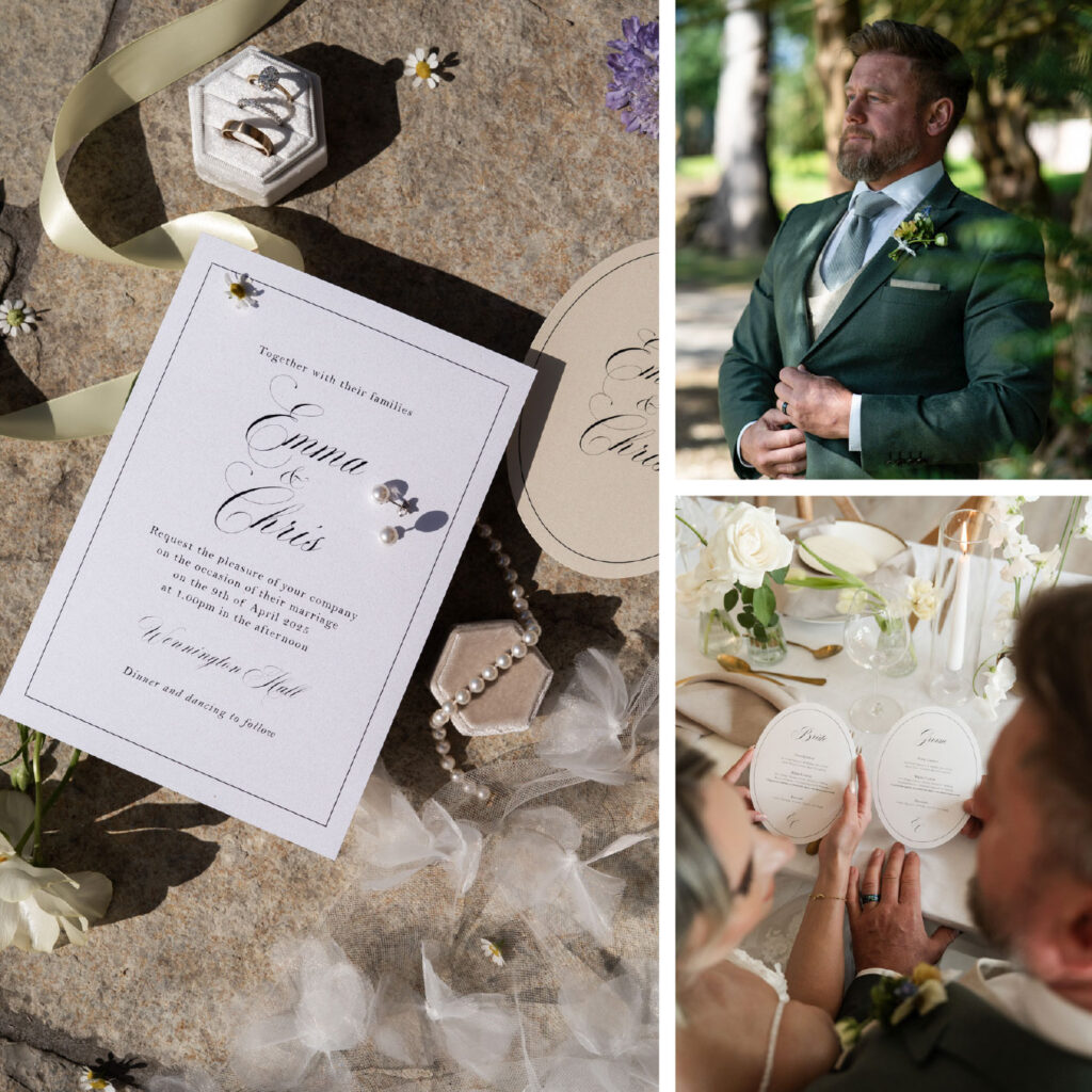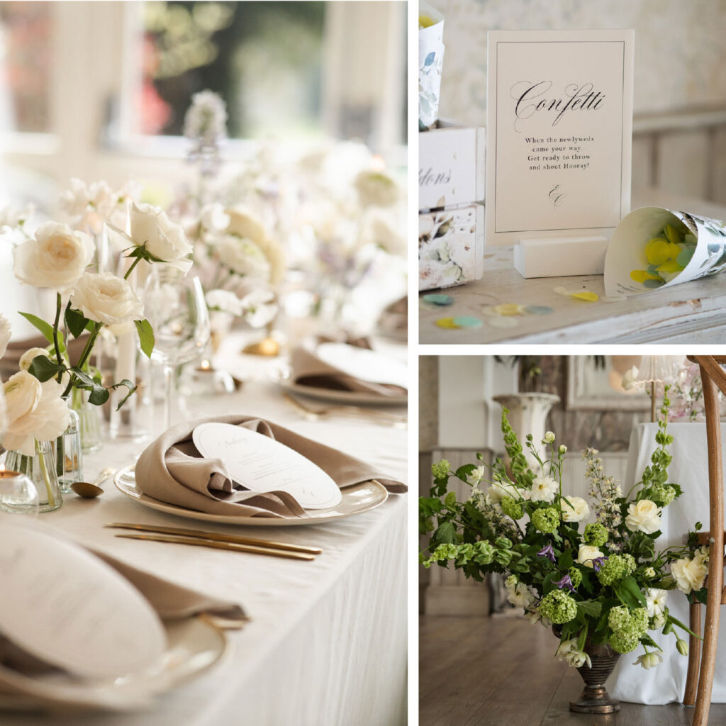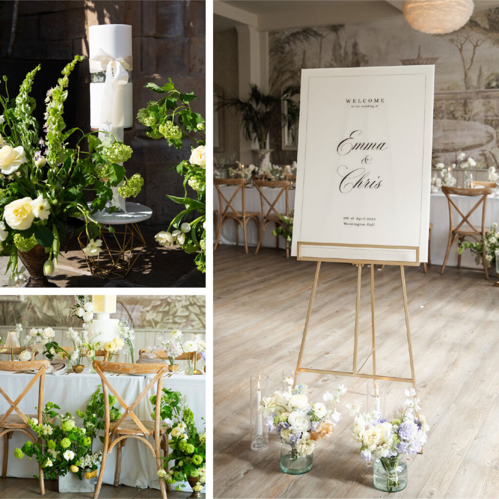 Soft whites paired with subtle pastels, elegant typography, and delicate foliage. This beautiful shoot at Wennington Hall in Lancaster is filled with timeless romance. Styled shoot concept by Mally’s Crafts